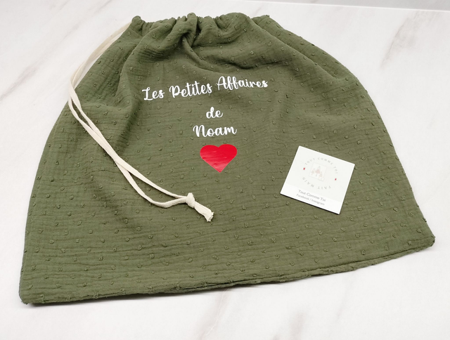 Organisez votre linge avec style grâce à nos sacs de linge artisanaux. Chaque sac est soigneusement confectionné à la main avec des matériaux de qualité et personnalisable à volonté, un prénom , une citation, un dessin !