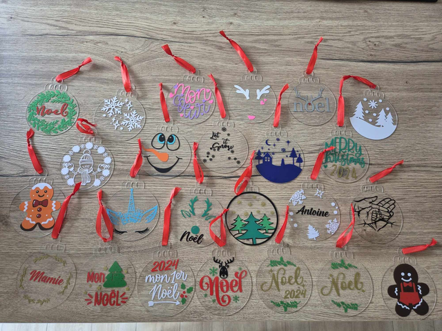 À vendre : Boules plates de Noël personnalisées avec dessin au choix. Parfaites pour apporter une touche artistique et unique à votre sapin ! 🎄